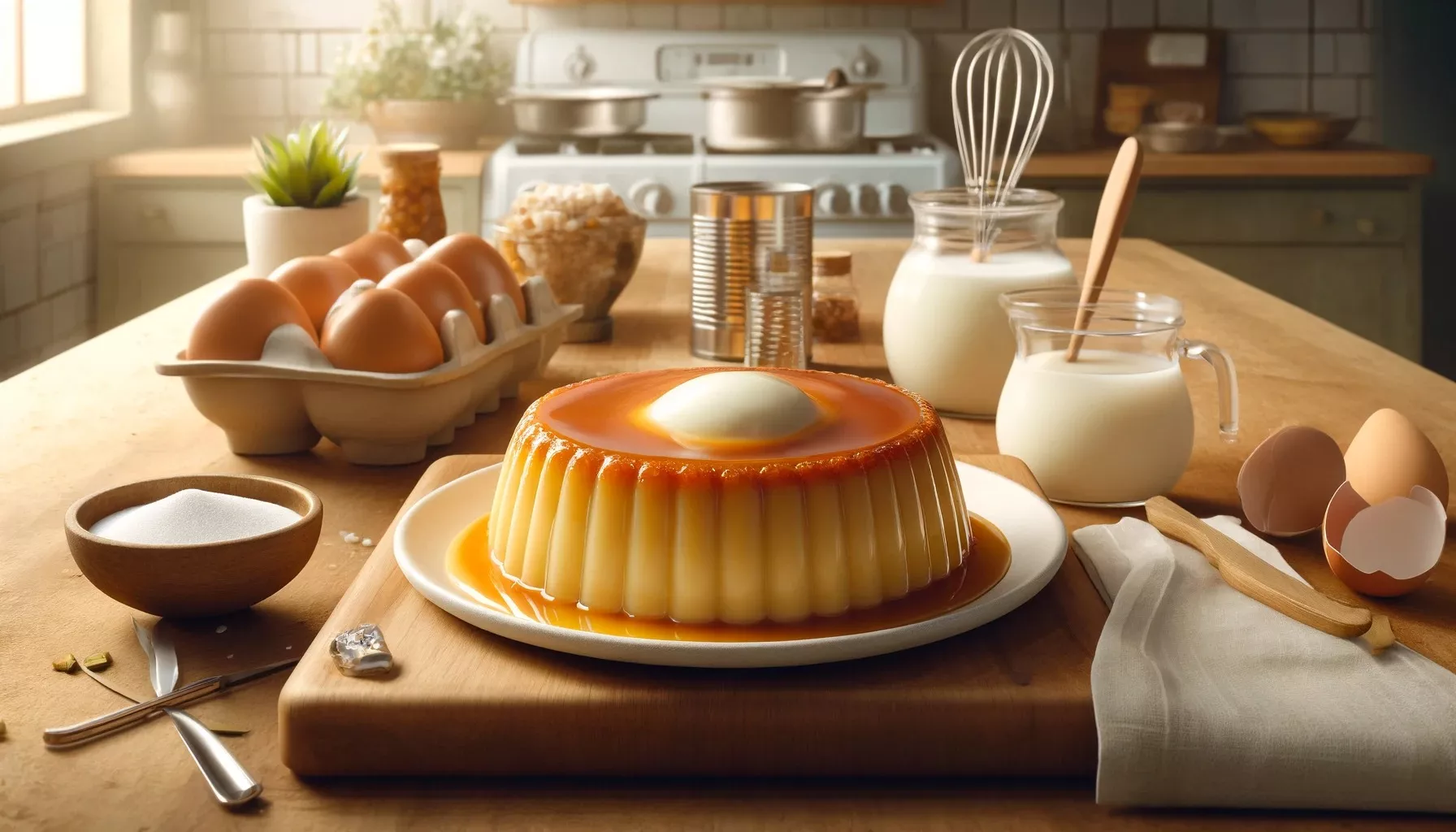 Ingredientes: 1 xícara de açúcar 1/2 xícara de água 1 lata de leite condensado 2 latas de leite (use uma lata de leite condensada como