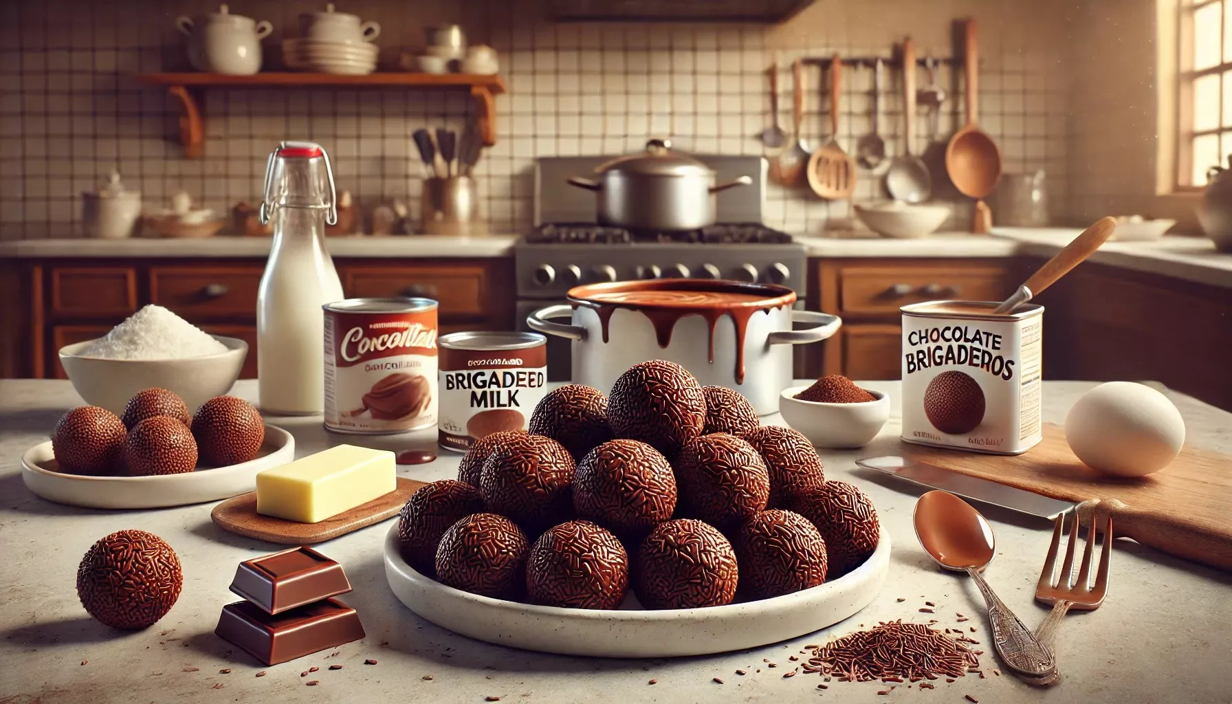 Ingredientes: 1 lata de leite condensado 2 colheres de sopa de chocolate em pó 1 colher de sopa de manteiga Chocolate granulado para enrolar Modo