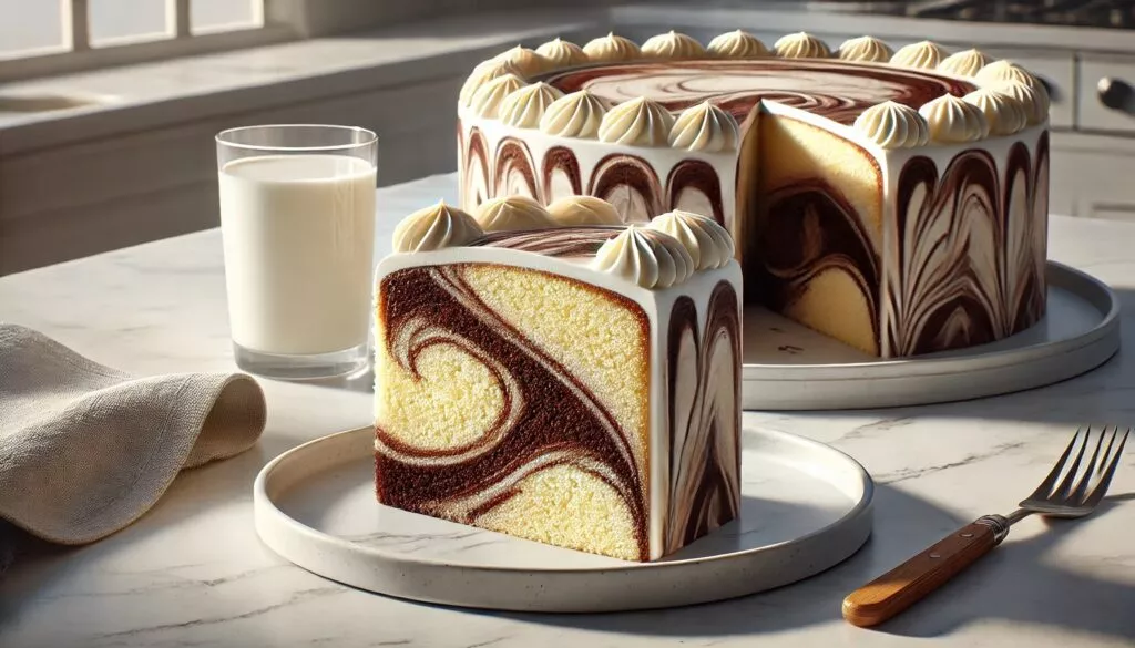 - Em uma forma untada, despeje camadas alternadas da massa branca e da massa de chocolate.