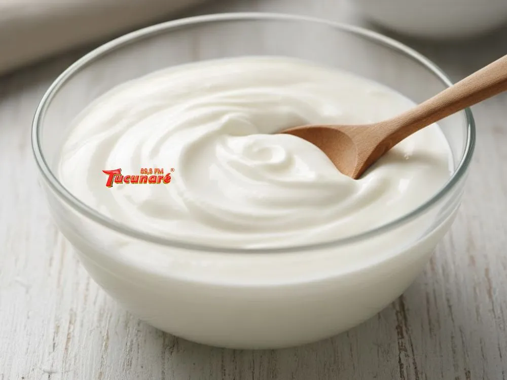 Misture o iogurte natural.