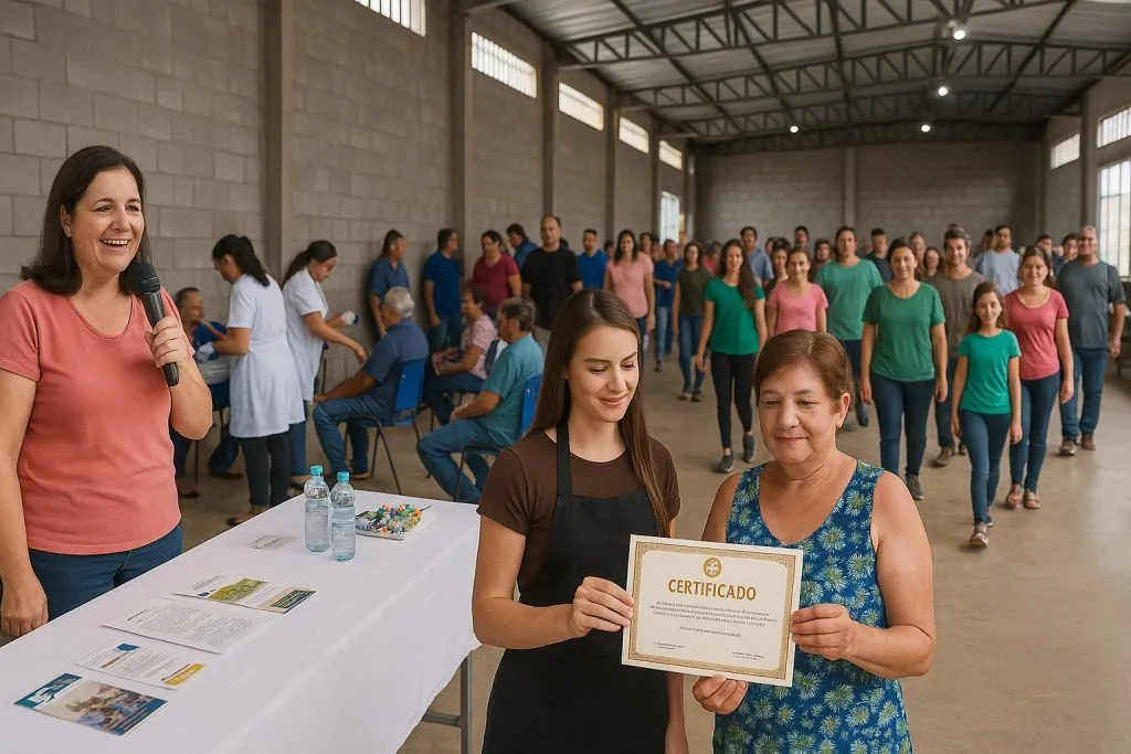 Outro momento de celebração foi a entrega dos certificados do curso de culinária, realizado pela Secretaria de Assistência Social. O curso teve duração de 75 dias e foi concluído com êxito por 16 participantes. O prefeito e o vice-prefeito fizeram questão de parabenizar tanto os alunos quanto a equipe organizadora pelo empenho e comprometimento ao longo do projeto.